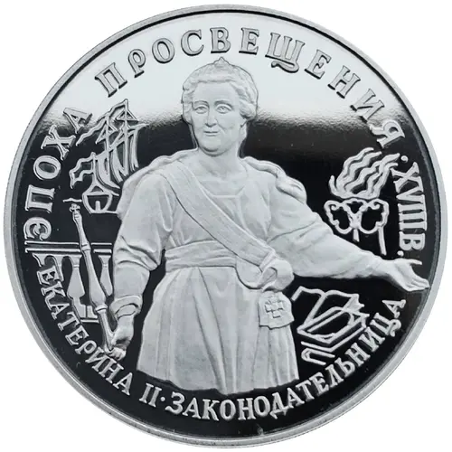 | Chữ khắc mặt trước | ЭПОХА ПРОСВЕЩЕНИЯ XVIII В. ЕКАТЕРИНА II ЗАКОНОДАТЕЛЬНИЦА (Translation: THE AGE OF ENLIGHTENMENT 18TH CENTURY CATHERINE II LEGISLATOR) |