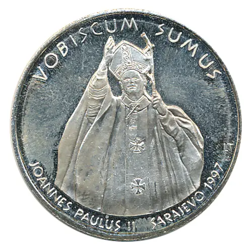 | Obverse lettering | VOBISCUM SUMUS JOANNES PAULUS II SARAJEVO 1997 (Translation: We are with you John Paul II) |