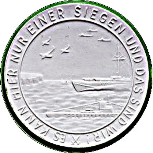 | Mô tả mặt trước | U-boat and speed boat at sea with airplanes above. |