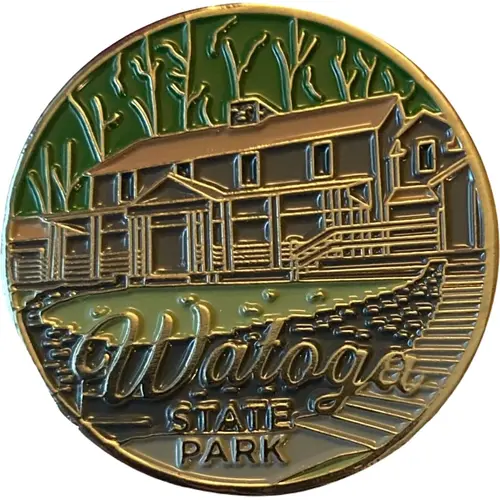 | Obverse description | Trees behind Watoga’s main building, which includes the park office, maintenance department, gift shop, and CCC Museum |