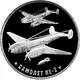 | Ön yüz açıklaması | A relief image of a PE-2 dive bomber, which struck enemy positions. The second bomber was created using laser matting technology. An inscription is located along the edge of the medal. |