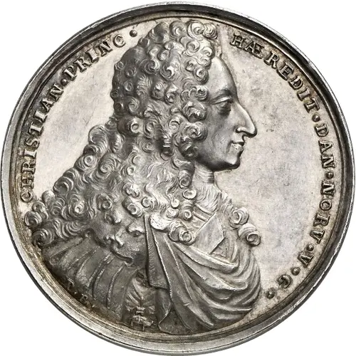 CHRISTIAN · PRINC · | HÆREDIT · DAN · NOR · V · G · (Translation: Chistian hereditary Prince of Denmark, Norway, of the Wends and the Goths) |