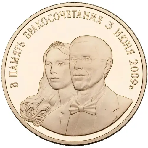 | Obverse lettering | В ПАМЯТЬ БРАКОСОЧЕТАНИЯ 3 ИЮНЯ 2009 г. (Translation: In memory of the wedding June 3, 2009) |