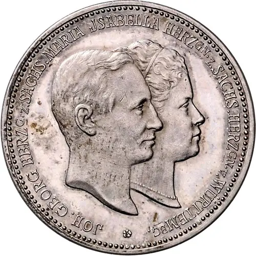 | Reverse lettering | ⋆ VERMÄHLT ZU STUTTGART AM 5. APRIL 1894 ⋆ DEM ERLAUCHTEN PAARE DIE NUMISMATISCHE GESELLSCHAFT ZU DRESDEN |