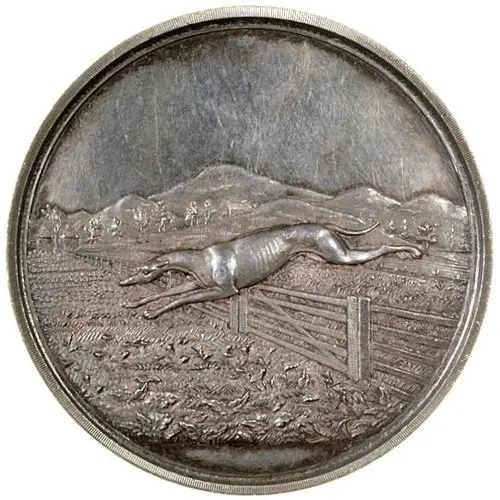 | Obverse description | Greyhound leaping over a 5-barred gate |