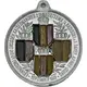 Four crowned and colorfully painted coats of arms between laurel branches. |