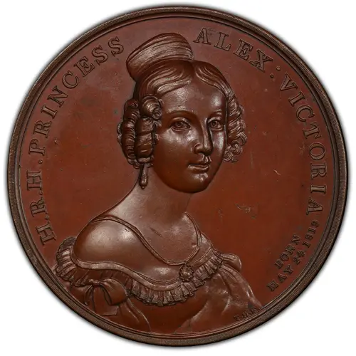 | Obverse lettering | H.R.H.PRINCESS ALEX: VICTORIA BORN MAY 26.1819. |