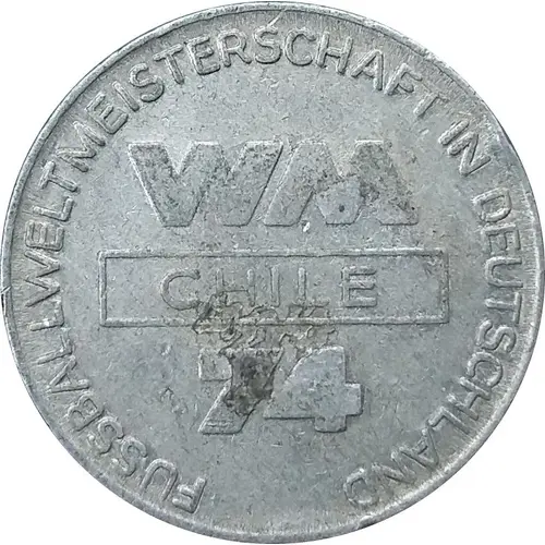 | Obverse lettering | FUSSBALLWELTMEISTERSCHAFT IN DEUTSCHLAND WM CHILE 74 |