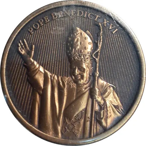| Descrição do anverso | Pope Benedict XVI with right arm raised gesturing to the faithful. |