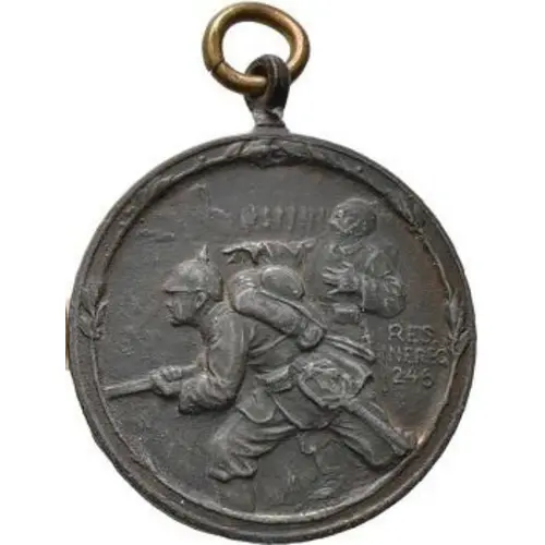 | Obverse description | Soldiers storming left, laurel branches surrounding. |
