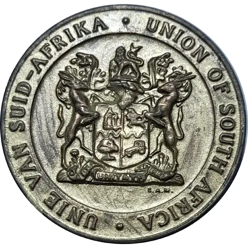 | Obverse lettering | . UNION OF SOUTH AFRICA . UINE VAN SUID - AFRIKA (Below Arms) S.A.M. |
