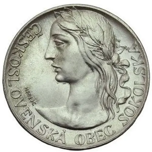 | Obverse lettering | ČESKOSLOVENSKÁ OBEC SOKOLSKÁ HOREJC (Translation: CZECHOSLOVAK SOKOL ORGANIZATION) |