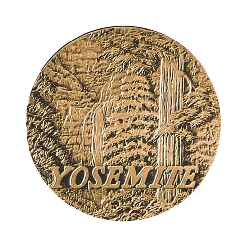 | Reverse lettering | `Climb the mountains and get their good tidings` John Muir YOSEMITE NATIONAL PARK SERVICE CENTENNIAL *ACT OF CONGRESS* 1990 |