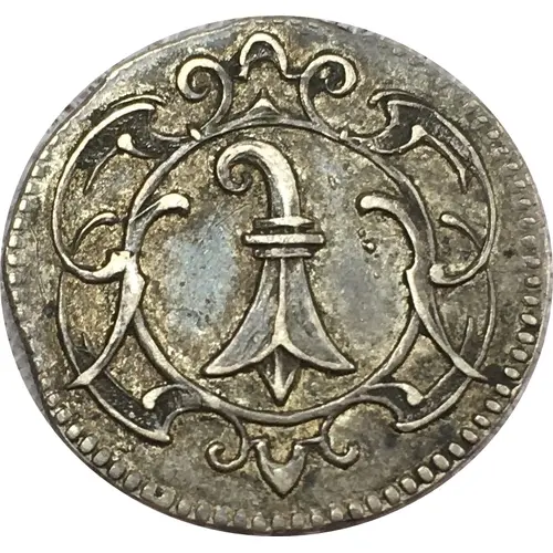 | Reversbeschreibung | Flower on top of 3-line inscription within laurel wreath. |
