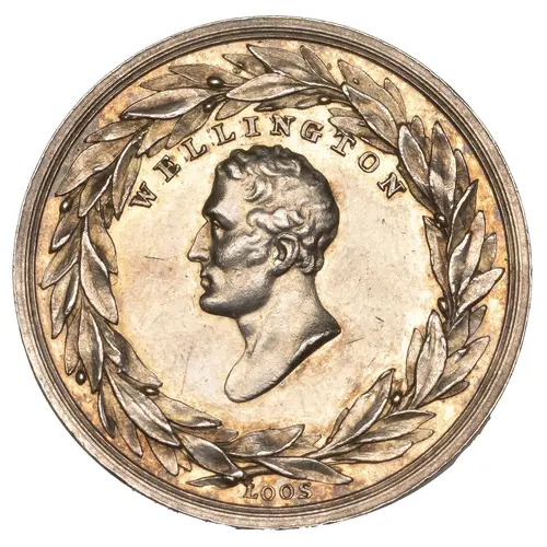 | Obverse description | Head of the Duke of Wellington left within closed wreath |
