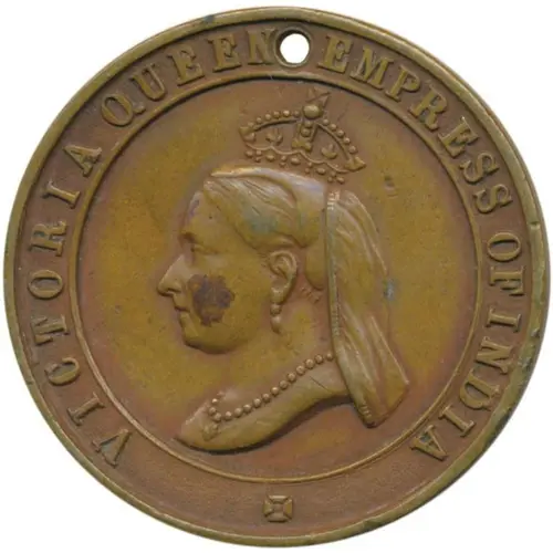 | Reverse lettering | PRESENTED BY SEWLAL MOTILAL JUBILEE MEDAL 1887 |