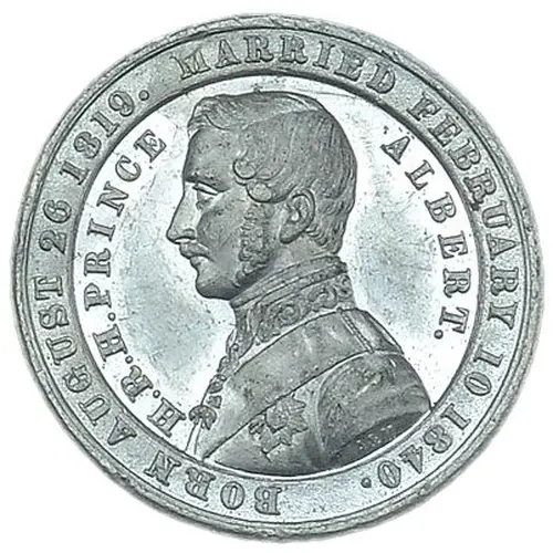 | Obverse lettering | BORN AUGUST 26 1819. MARRIED FEBRUARY 10 1840. H.R.H. PRINCE ALBERT. |