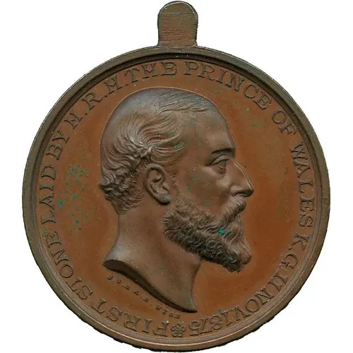 | Obverse lettering | FIRST STONE LAID BY H.R.H.THE PRINCE OF WALES K.G.11 NOV.1875 |