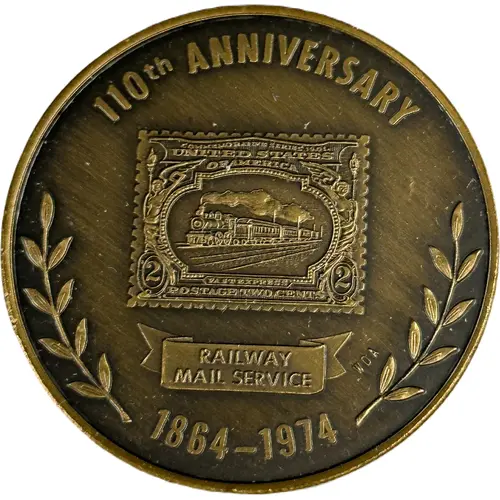 | Opschrift voorzijde | 110th ANNIVERSARY UNITED STATES OF AMERICA 2 FAST EXPRESS 2 POSTAGE TWO CENTS RAILWAY MAIL SERVICE W.D.A. 1864 - 1974 |
