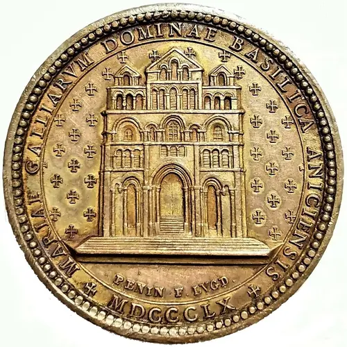 | Obverse lettering | MARIA GALLIARVM DOMINAE BASILICA ANICIENSIS. PENIN . F. LVGD . ✚ MDCCCLX ✚ |