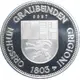 | Descrizione del rovescio | Graubünden coat of arms surrounded by wording and Canton birth year 1803. Unique strike number above arms and silver purity stamp right of date. |