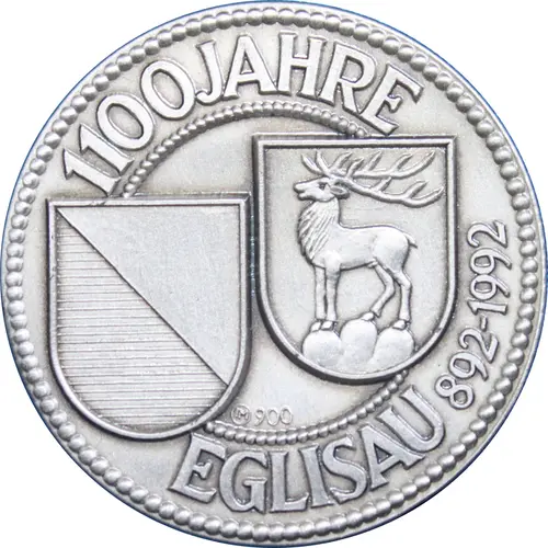 | Obverse lettering | 1100 JAHRE EGLISAU 892-1992 900 |