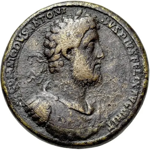 | 正面描述 | Laureate bust of Emperor Commodus facing right, wearing scale cuirass with shoulder pteruges (protective lappets). |