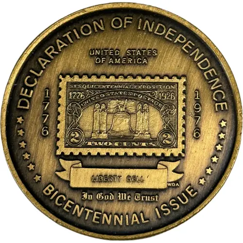 | Obverse lettering | DECLARATION OF INDEPENDENCE UNITED STATES OF AMERICA SESQUICENTENNIAL EXPOSITION 1776 UNITED STATES POSTAGE 1926 2 TWO CENTS 2 1776 1976 LIBERTY BELL WDA In God We Trust BICENTENNIAL ISSUE |