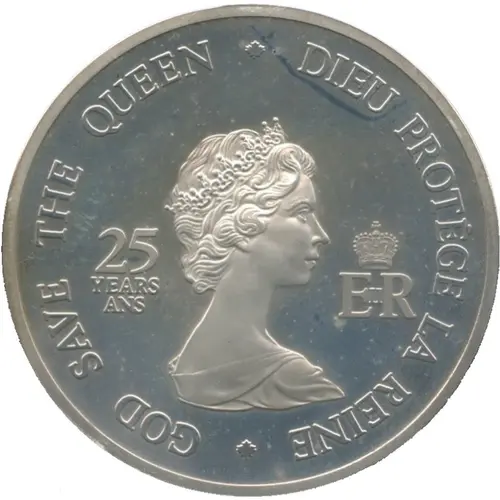 | Obverse lettering | God Save the queen Dieu protège la reine 25 years ans ER II |