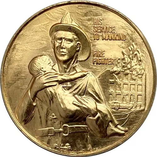| Obverse lettering | HIS SERVICE TO MANKIND FIRE FIGHTER TS |