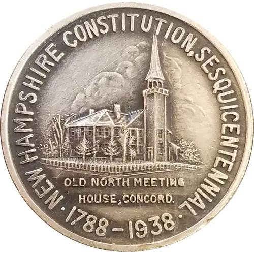| Leyenda del anverso | NEW HAMPSHIRE CONSTITUTION, SESQUICENTENNIAL OLD NORTH MEETING HOUSE, CONCORD. 1788-1938 |
