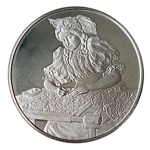 | Obverse description | Czech woman embroidering a dress. |