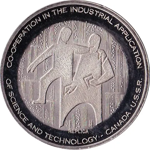 | Obverse lettering | CO-OPERATION IN THE INDUSTRIAL APPLICATION REPLICA OF SCIENCE AND TECHNOLOGY - CANADA - U.S.S.R. |