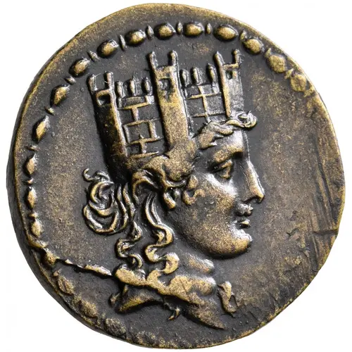 | توضیحات روی سکه | Head of the city-goddess to right, wearing elaborate mural crown consisting of three towers and a crenelated city wall. |
