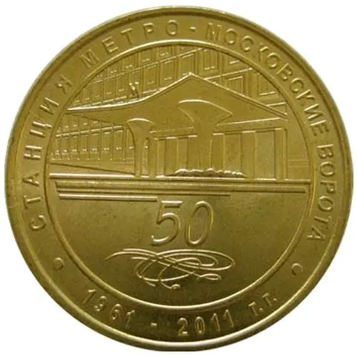 | Obverse lettering | СТАНЦИЯ МЕТРО - МОСКОВСКИЕ ВОРОТА 50 ∙ 1961 - 2011 г.г. ∙ (Translation: Metro Station Moskovskiye Vorota (Moscow Gate) 1961-2011 years) |