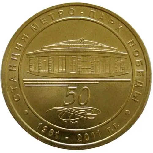 | Obverse lettering | СТАНЦИЯ МЕТРО - ПАРК ПОБЕДЫ 50 ∙ 1961 - 2011 г.г. ∙ (Translation: Metro Station Park Pobedy (Victory Park) 1961-2011 years) |