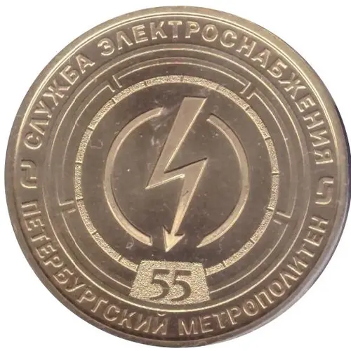 | Obverse lettering | СЛУЖБА ЭЛЕКТРОСНАБЖЕНИЯ 55 ПЕТЕРБУРГСКИЙ МЕТРОПОЛИТЕН (Translation: Power Supply Service 55 ST. PETERSBURG METRO) |