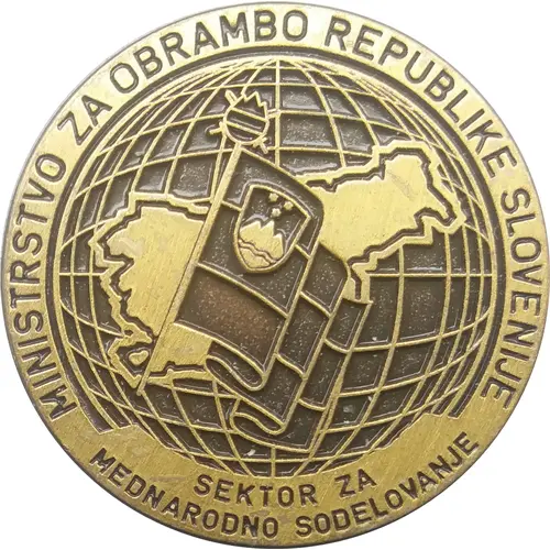 | 正面铭文 | MINISTRSTVO ZA OBRAMBO REPUBLIKE SLOVENIJE SEKTOR ZA MEDNARODNO SODELOVANJE |