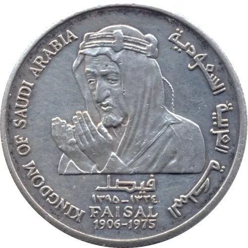 KINGDOM OF SAUDI ARABIA المملكة العربية السعودية فيصل ١٣٢٤-١٣٩٥ FAISAL 1906-1975 (Translation: Kingdom of Saudi Arabia Faisal 1395-1324 1906-1975) |