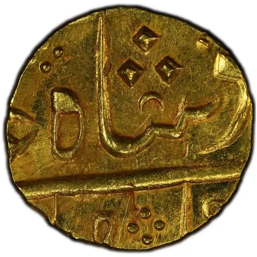 | Obverse description | Lettering in Persian describing Issuer and Emperor. Four dot pattern present. |