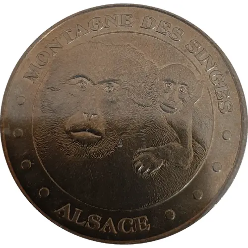 A Barbary macaque and its young at the animal park of Kintzheim, French commune of the department of Bas-Rhin, region Grand-Est. |