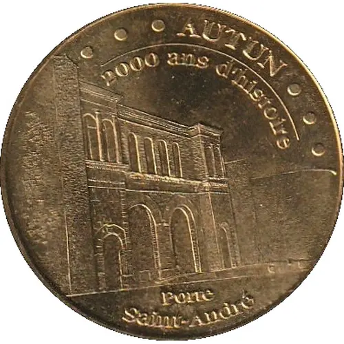 On the periphery, the word France written in eight languages. In the center of a hexagon, the Monnaie de Paris building surrounded by a circle of stars interrupted by the year. |