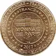 On the periphery the word France written eight in languages. France at 12 o`clock, 2019 at 6 o`clock, the whole linked by 14 stars on the right and on the left. In the center, the building of the Monnaie de Paris. |