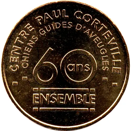 | Obverse lettering | CENTRE PAUL CORTEVILLE CHIENS GUIDES D`AVEUGLES 60 ans ENSEMBLE |