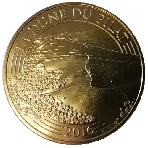 On the periphery the word France written in eight languages. France at 12 o`clock, 2017 at 6 o`clock, the whole linked by 14 stars on the right and on the left. In the center, the building of the currency of Paris. |
