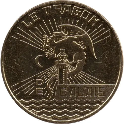 | Obverse description | Stylized representation of the Calais dragon spitting flames. |