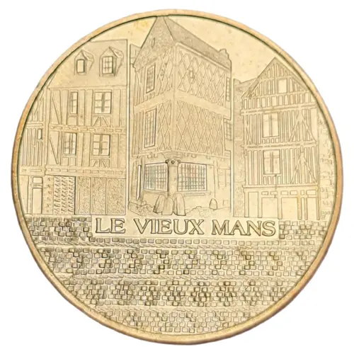 Three half-timbered houses from Le Vieux Mans in the upper section and a detail of the masonry of the Gallo-Roman wall in the lower section. This wall, dating from the late 3rd century, has a double facing composed on both sides of small-scale masonry in regular courses, with alternating courses of rubble and rows of bricks. The builders played on the color of the rubble to create a certain polychromy in the purely geometric decoration: lozenges, triangles, pointed circles, chevrons and Xs. |