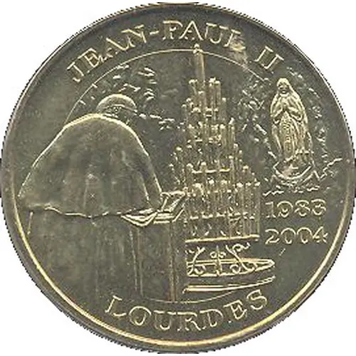 | Reverse description | Image of Our Lady of Lourdes statue surrounded by lettering. |