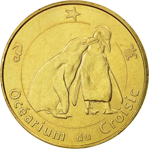 On the periphery the word France written in eight languages. France on the upper and lower sides of the hexagon with the year on the right and left. In the center, the building of the Monnaie de Paris with 6 stars above and below. |
