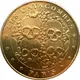 Text on periphery. In the center, a representation of the European map with the euro symbol and 15 stars of different sizes. |